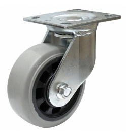 특징 : 강구의 2중 배열로 원활한 회전력, 부식방지를 위한 아연도금, 바퀴조립이 용이한 볼트너트구조, 강력한 용접제품, 볼베어링 사용으로 구름성이 우수함. 용도 : 분리수거용 운반구, 시장, 창고, 병원용 운반구, 기타산업용 운반구 등에 사용